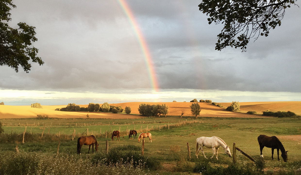 Pferde gehörten schon immer zu unserem Hof – die hier lebenden Tiere entstammen alle unserer eigenen Zucht. Aktuell sind, außer unseren eigenen Pferden der Rasse Mecklenburger Warmblut, dauerhaft fünf Pensionspferde bei uns. Unsere Pferde sind für den Reitunterricht vorgesehen, den ich für die Feriengäste anbiete. Außer meiner Ausbildung zur Fachkraft für Reittourismus kann ich auf langjährige Reiterfahrung zurückgreifen. Seit meinem zehnten Lebensjahr verbringe ich am liebsten jede freie Minute auf einem Pferderücken. Ich bin jahrelang im Verein geritten und habe seit dem Umzug nach Plath verschiedene Kinderreitgruppen aufgebaut. Zunehmend kam dann auch der Reitunterricht für Erwachsene im Breitensport dazu.
